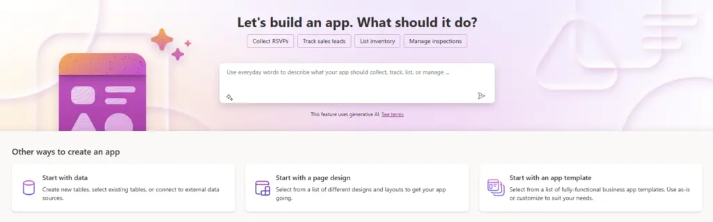 To create a Canvas App visit https://make.powerapps.com/. There are several different ways to start building canvas apps that Microsoft have pre-set. For this purpose of jumping straight in I will use ‘Start with an app template’
