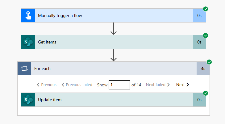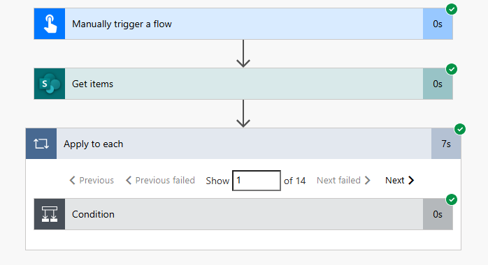 In the two scenarios above we ran both automations, the first one using the conditions took 7 seconds to run updating 14 records