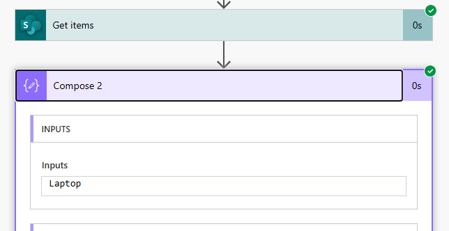 first(outputs('Get_items')?['body/value'])?['Title'] The result:
