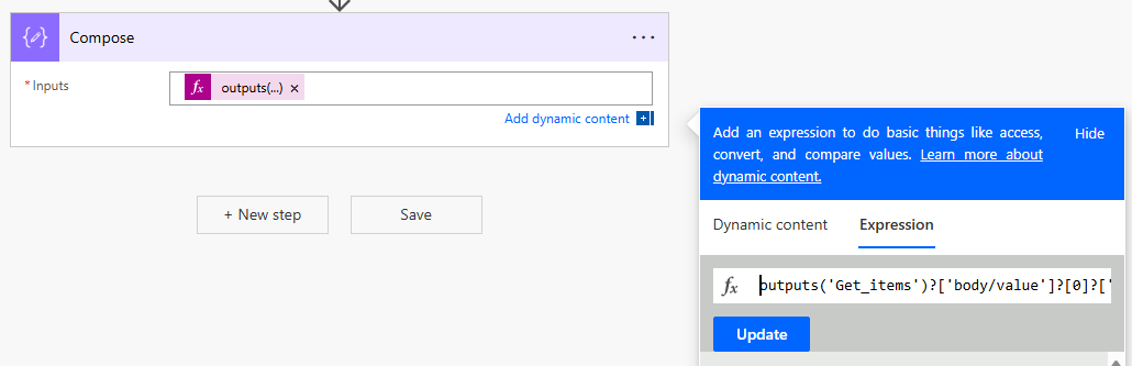 outputs('Get_items')?['body/value']