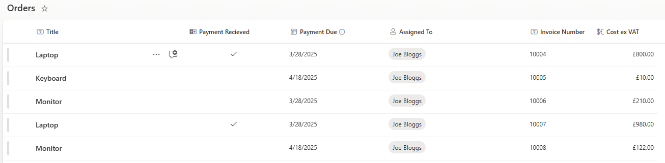 Now to get the records as we are using a SharePoint list we can use the ‘Get Items’ actions. Below is an example of the SharePoint list we are using: