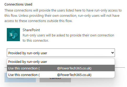 Instead of using ‘Provided by run-only’ user we then need to select one of the connections provided that has access to the connection