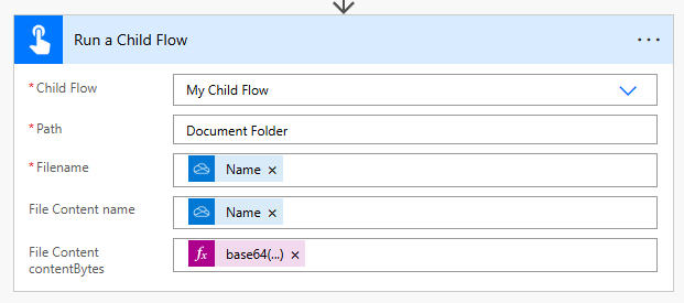 As we added some parameters to the Child Flow, the child flow action will now expect some parameters to be passed into the child flow: