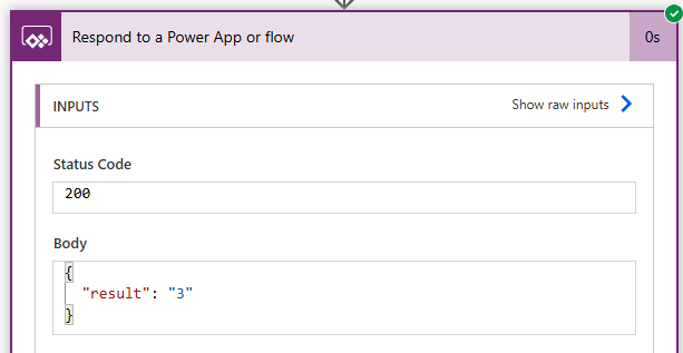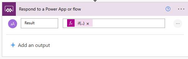) Finally we need to tell the automation to respond back to the app, for this we will use ‘Respond to a Power App or flow’ action. Within the action we will want to work out the calculation and return the value to the app. The value we will return will be stored inside the ‘Result’ we have defined as you can see below: